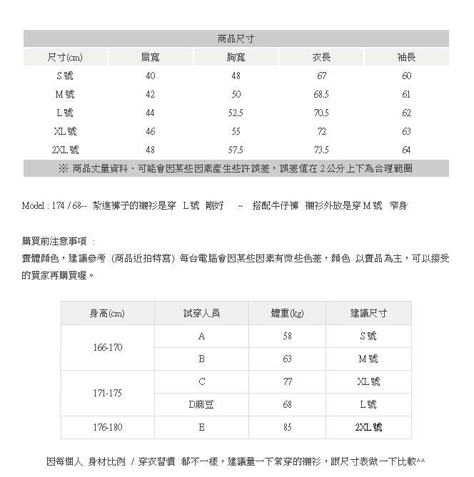 也可以詢問尺寸【商品編號及身高、體重】