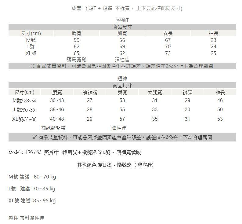 這是 成套 ( 短T + 短褲 不拆賣, 上下只能搭配同尺寸)