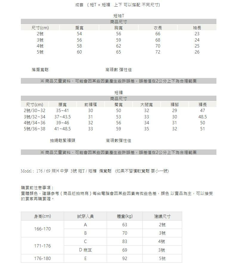 ( 短T + 短褲 上下 可以搭配 不同尺寸)