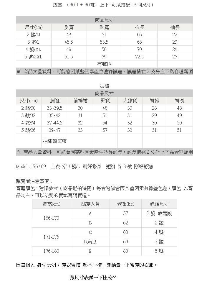 這是 成套 ( 短T + 短褲 上下 可以搭配 不同尺寸)